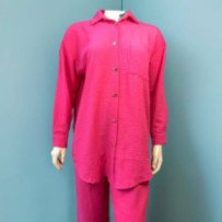 Un ensemble raffiné pour petite fille, comprenant un gilet à boutons et un pantalon ample, parfait pour un look élégant et moderne.
