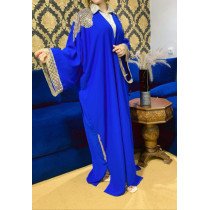 Ce caftan marocain vert incarne l'élégance et le raffinement à travers des lignes délicates et une couleur riche